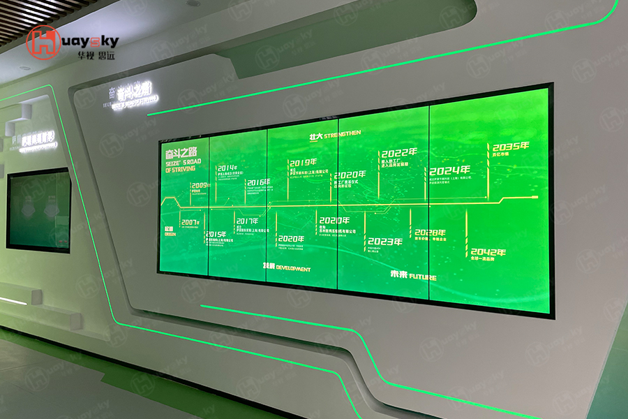 展廳內(nèi)采用了多組拼接屏、廣告機(jī)、觸控一體機(jī)、中控系統(tǒng)等多媒體設(shè)備,簡約大氣,科技感十足;運(yùn)行穩(wěn)定,能實(shí)現(xiàn)24小時(shí)全天候工作,圖文并茂,打造一場(chǎng)視聽享受盛宴,極具科技感的沉浸式空間。